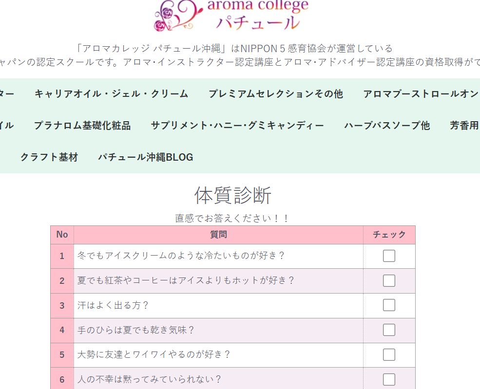 そこで、aroma college パチュールの体質診断を使い、