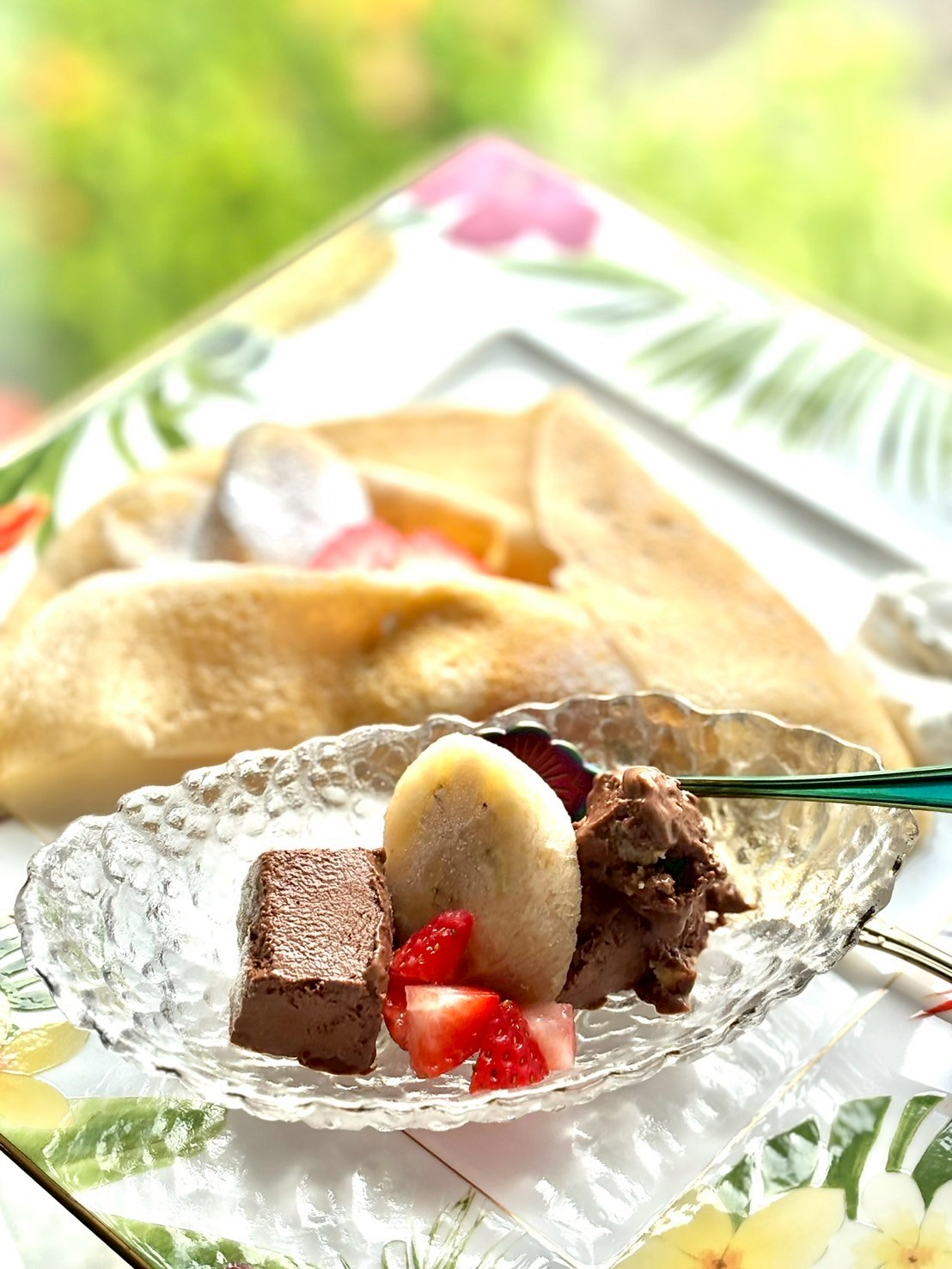デザートは 有機コーヒーと有機クレープ 有機チョコレートアイス